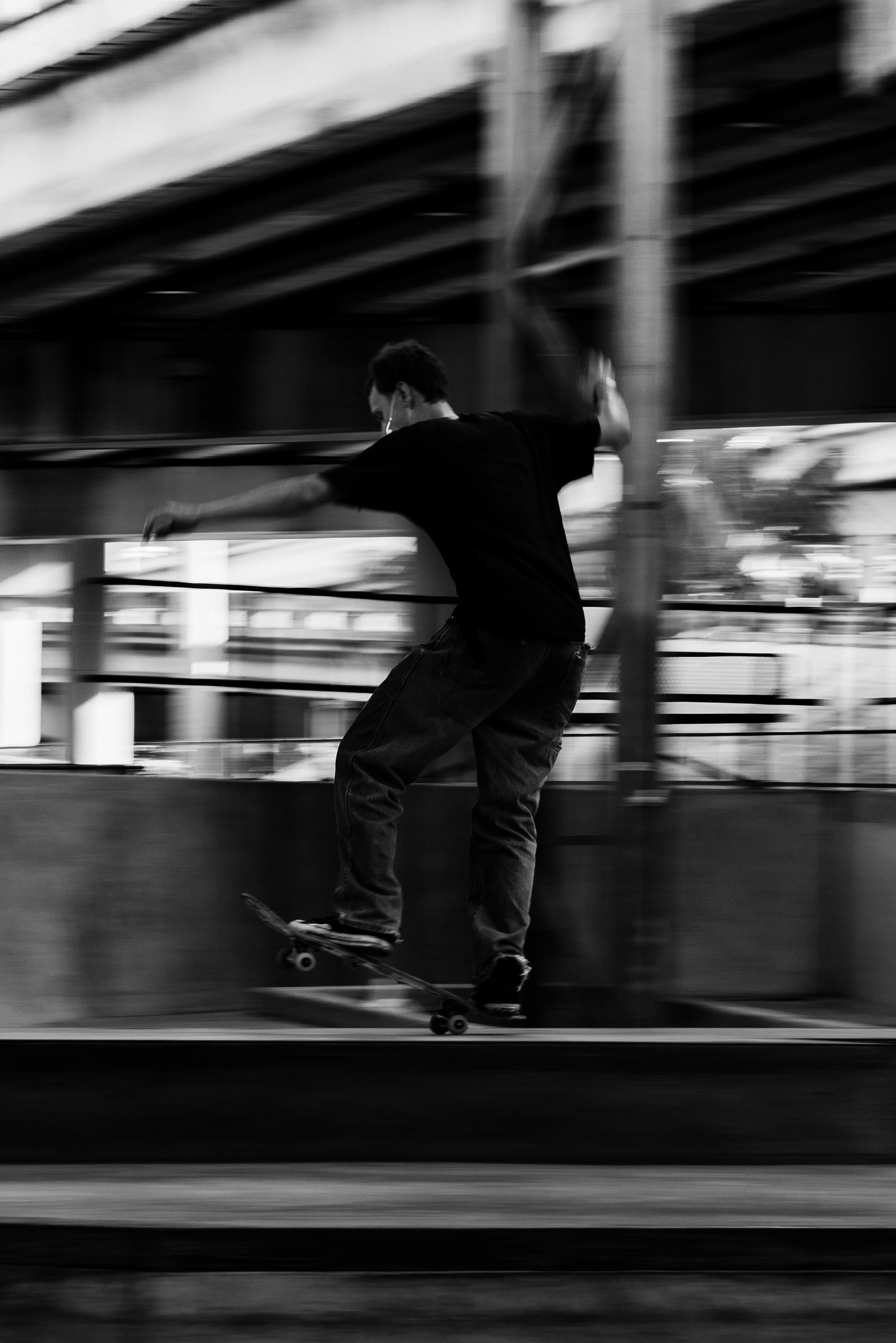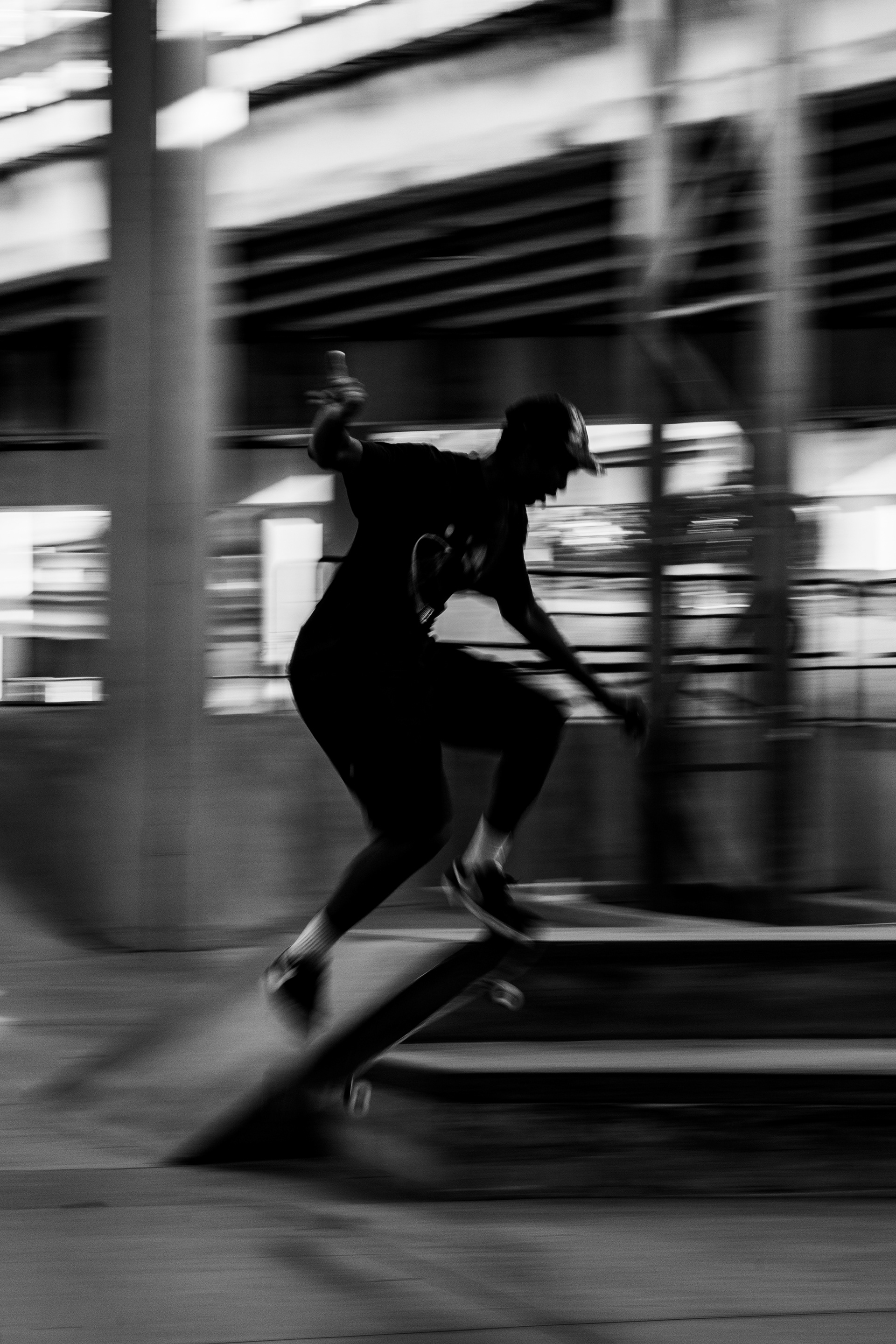 "LOT 11" is a photographic series inspired by Miami’s iconic Lot 11 skatepark, a place that's become a cultural hub for skaters. Through black-and-white images, I experimented with sharpness, blur, and intense contrasts to capture skateboarding as something beyond tricks and technique, revealing it instead as a rhythmic, almost dance-like expression of individuality and style.